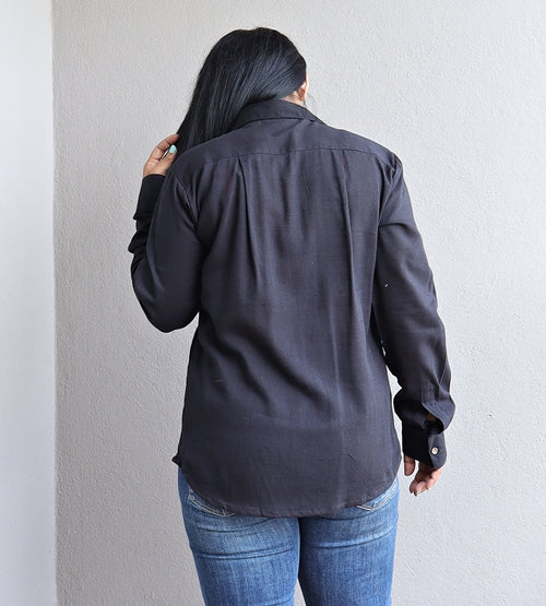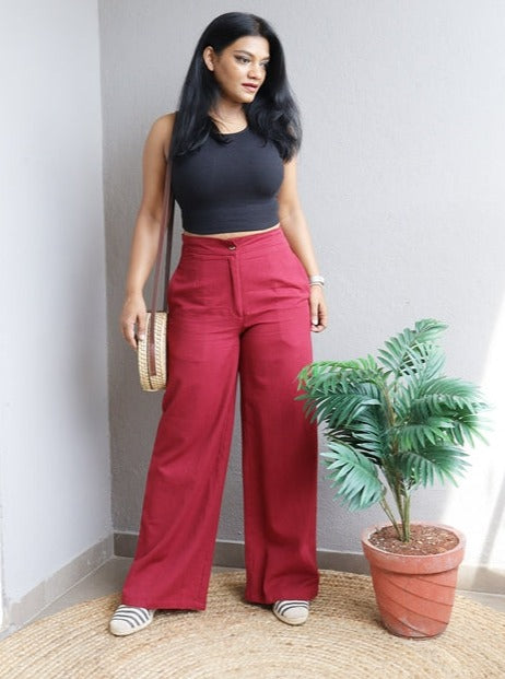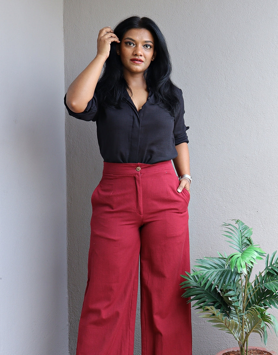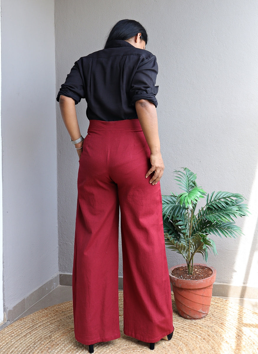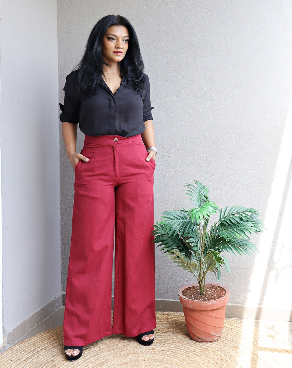 Co-Ord Set Black Linen Shirt and Maroon Wide Leg Pants
