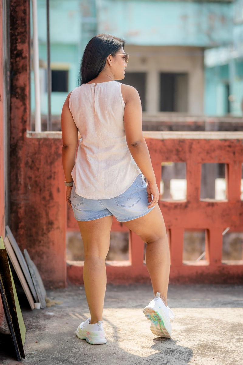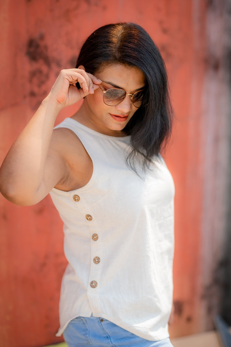 Set of Two Kora Top and Brick Red Handloom Cotton Pencil Skirt